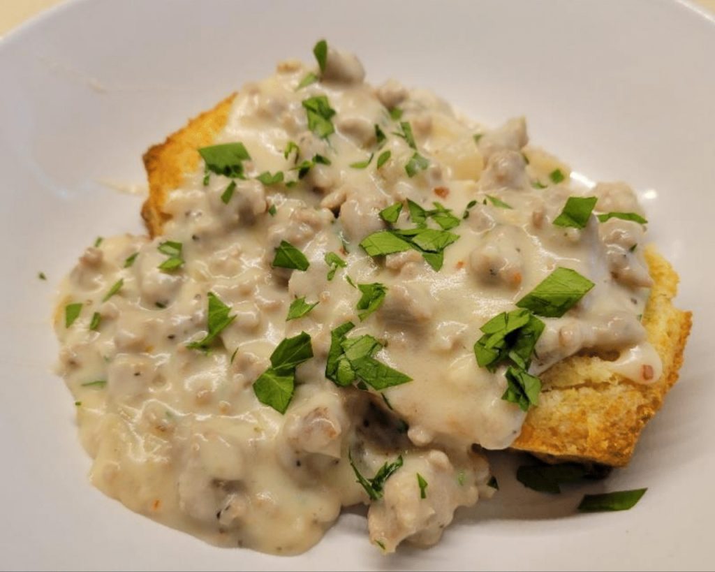 There are few things that make a hearty Winter breakfast like a rich sausage gravy and biscuits! This gravy is my take on the traditional using less cream so you can feel justified eating a little bit more! I use the flour roux as the main thickening agent, reducing the amount of cream you might typically use.